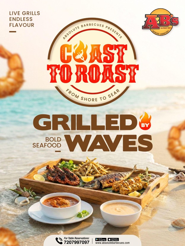 From Shore to Sear – Absolute Barbecue Brings Coastal Flavors to Your Plate Coast to Roast is Absolute Barbecues celebration of coastal flavours, smoky grills, and the joy of shared dining. Inspired by the rhythm of the coast and flame-led cooking, the festival brings together comforting and bold seafood preparations that feel both familiar and exciting. Dishes like Crab and Lobster Bisque, Red Snapper in Hoisin Sauce, Nethili Thengai Podi (Anchovies Fish), Ring Calamari, a...